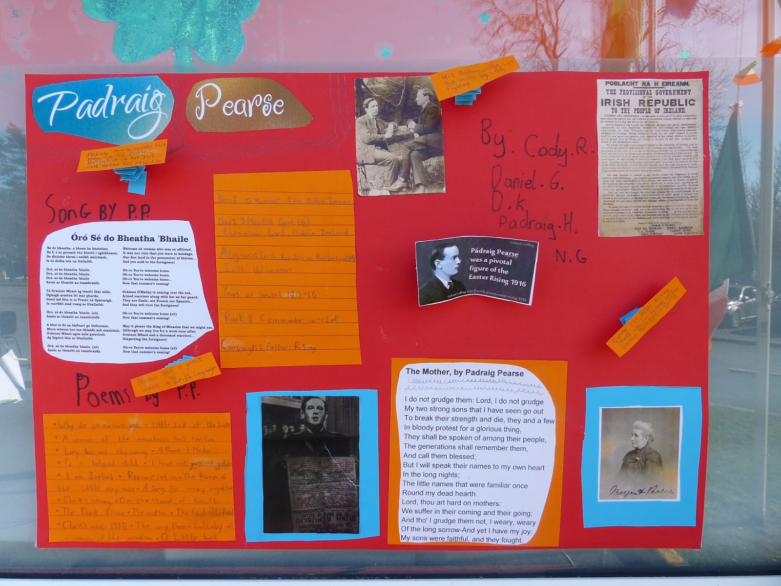 Mr Shine’s class researched the seven signatories of the 1916 Proclamation.