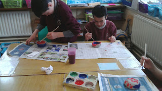 In History we wrote about the famine and made charcoal pictures which made up scenes from the famine.