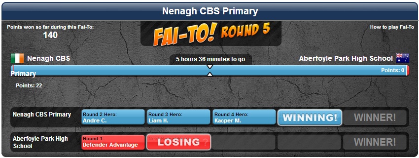 The school is on it’s way to winning it’s 4th consecutive Fai-To in Mangahigh. We are competing against Aberfoyle Park High School, Adelaide, Australia.