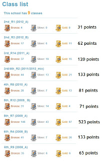 At the time of publishing, we have 154 participants in Mangahigh. We are running a competition in school to see what class can win the most medals for the school by the mid-term. 5th class in Room 7 cannot be counted in this competition as they started a week before everybody else. Below is a breakdown of the school points won by each class to date. (Click images to enlarge)