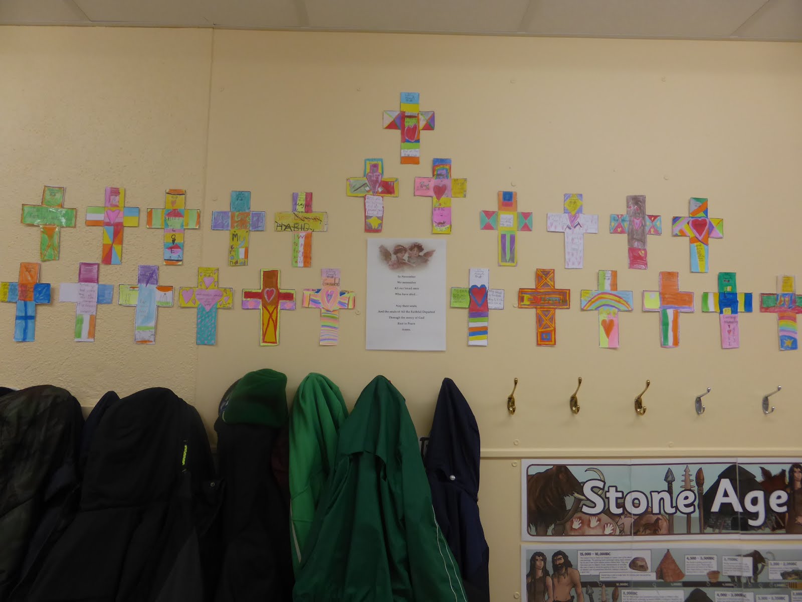 In Religion the boys remembered the Holy Souls and wrote to their loved ones on a cross to help remember them.
